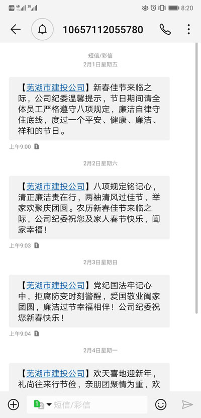 ▲通過(guò)微信、短信平臺(tái)發(fā)送元旦春節(jié)廉政短信,送出新年祝福的同時(shí)也送出了廉政提醒