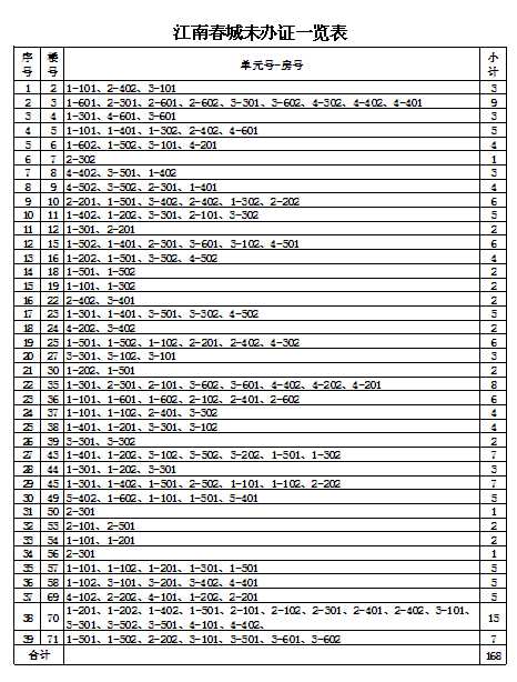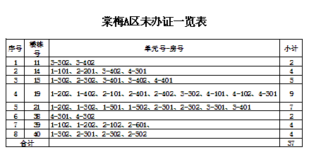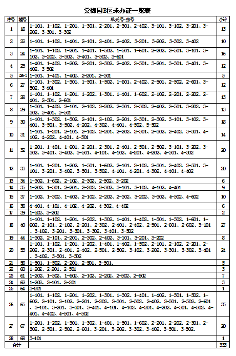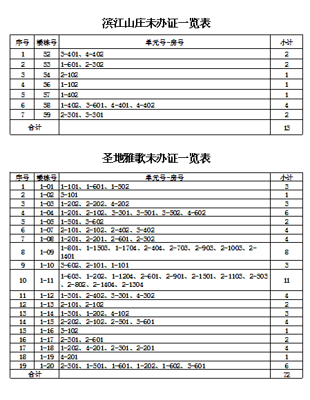 由原益安公司和市建投公司負(fù)責(zé)拆遷和安置的安置戶,安置房辦證工作開展已經(jīng)近三年了。截止目前,還有少部分樓棟號的安置戶(具體樓棟號詳見附表)至今未來辦理辦證手續(xù)。請你們于12月31日前,來我公司辦理相關(guān)的辦證手續(xù)。若因安置戶自身原因拖延未辦理各項辦證手續(xù)的,今后由此產(chǎn)生的辦證不便和麻煩,由各安置戶自行承擔(dān)。如有疑問或不清楚的請咨詢我公司,咨詢電話:5992137,5992136。