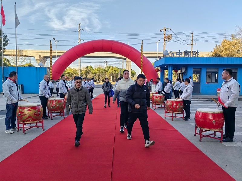 滿載收獲喜悅,滿懷奮進(jìn)豪情。蕪湖莫森泰克汽車科技股份有限公司總經(jīng)理周玉成攜帶全司中、高層領(lǐng)導(dǎo)干部整齊列隊(duì),在公司大門口迎接前來(lái)上班的員工們。伴著八面大鼓鏗鏘有力的鼓點(diǎn)節(jié)奏和喜慶熱烈的歌曲聲,在清晨溫暖的陽(yáng)光中,來(lái)自各方的員工們紛紛踏著紅地毯穿過(guò)紅色拱門,進(jìn)入廠區(qū)開啟新年第一天的工作。